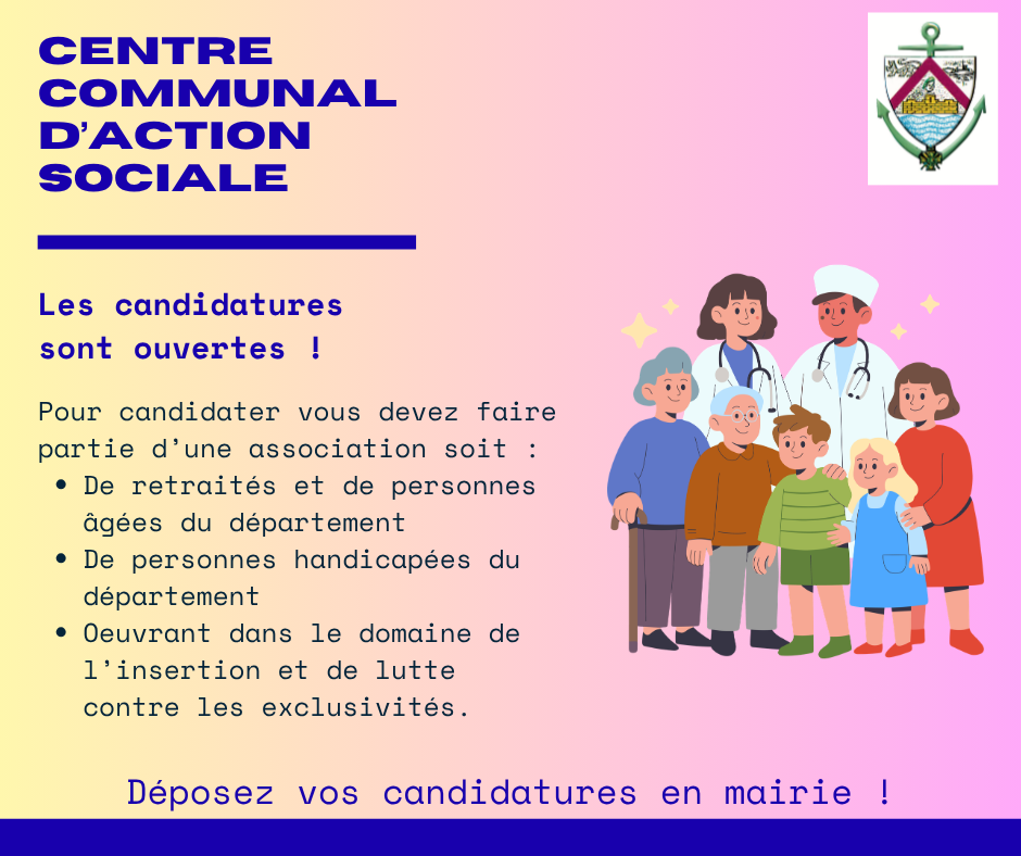 Si vous souhaitez siéger au sein du Centre Communal d’Action Sociale de la commune vous pouvez adresser votre candidature en mairie !