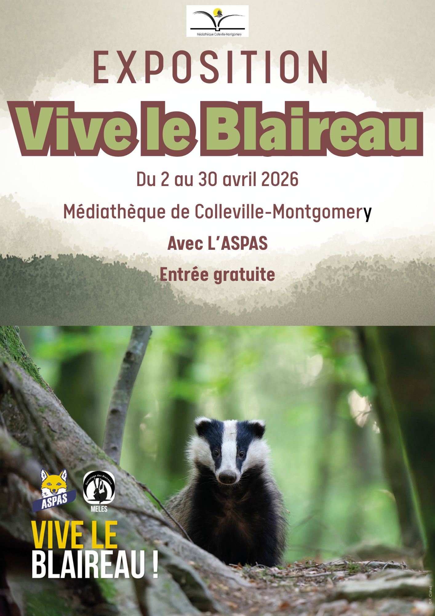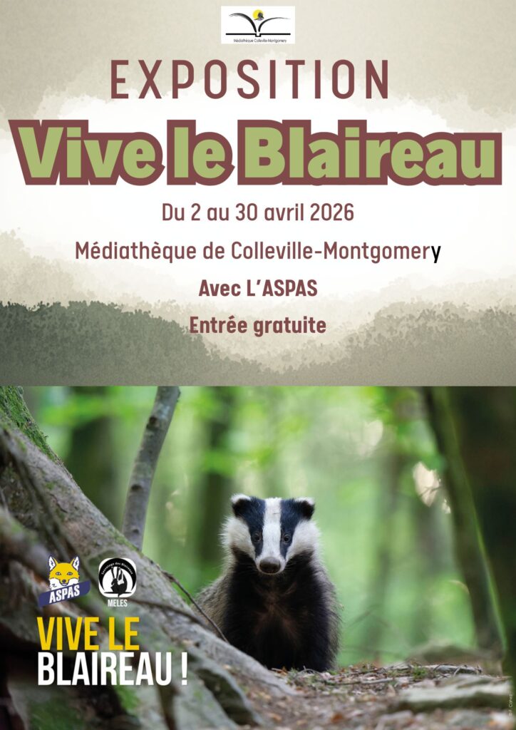 Venez découvrir l’exposition « Vive le Blaireau » à la médiathèque, en partenariat avec l’Association pour la sauvegarde de la faune sauvage. Entrée gratuite, du 2 au 30 avril 2026.